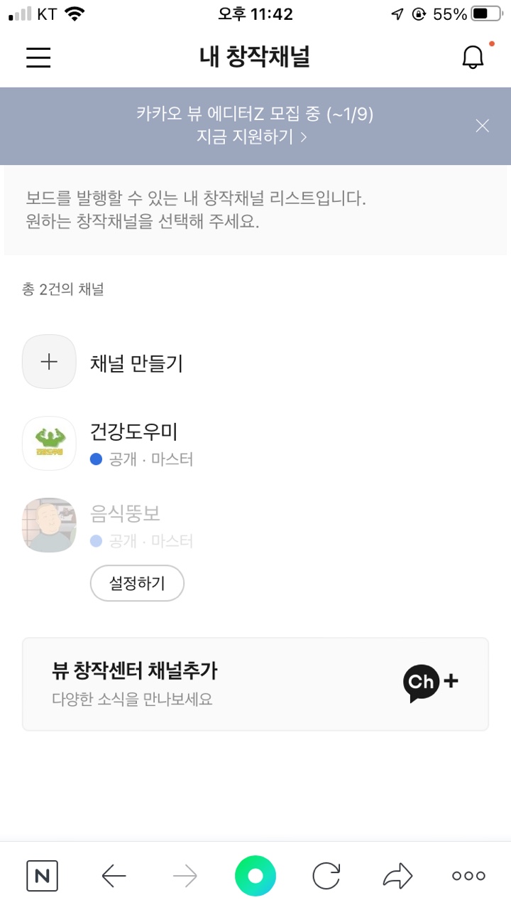 -------------------------------------여기까지는 카카오 뷰 채널 만드는 방법입니다! -------------------------------------